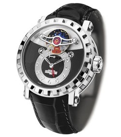 Das System schlägt im Takt des selbstaufziehenden mechanischen Kalibers DW 2041, das durch sein Lünettengehäuse geschützt ist und die Mitte der "Imperial Columns" -Muster exklusiv für die Marke geschnitzt hat. Die in Palladium gehauene Box, die bis zu 100 Meter wasserdicht ist und mit einer abschließbaren Krone ausgestattet ist, wird von einer Lünette aus dem gleichen seltenen Metall begleitet, die die Doppeltes Zifferblatt, das abwechselnd ein Dekor Guilloché schwarzen Cètes de Genève und ein Dekor Sun, auch Guilloche.